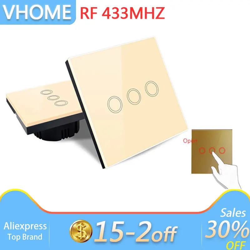 HIGH QUALITY Vhome Wall Touch SwitchRF433mhz Smart Home Touch Switch PanelEV1527 EU/UK Standard Wifi Control Ewe